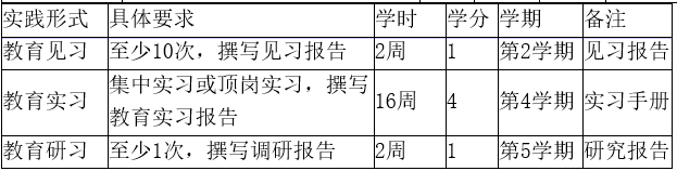 校外实践包括教育见习、教育实习、教育研习。实践教学时间原则上不少于1学年,其中校外集中实践不少于1学期。教育见习1学分,第2学期完成,包括观摩公司产品活动、听课、旁听教研活动,各类活动总数不少于10次。教育实习4学分,第4学期完成,包括试讲、教研、讲课、员工管理、课题研究等活动,各类活动总数不少于40次。教育研习1学分,贯穿实践教学全过程,第5学期撰写1份不少于3000字的教育研习报告,由导师进行考核评价。